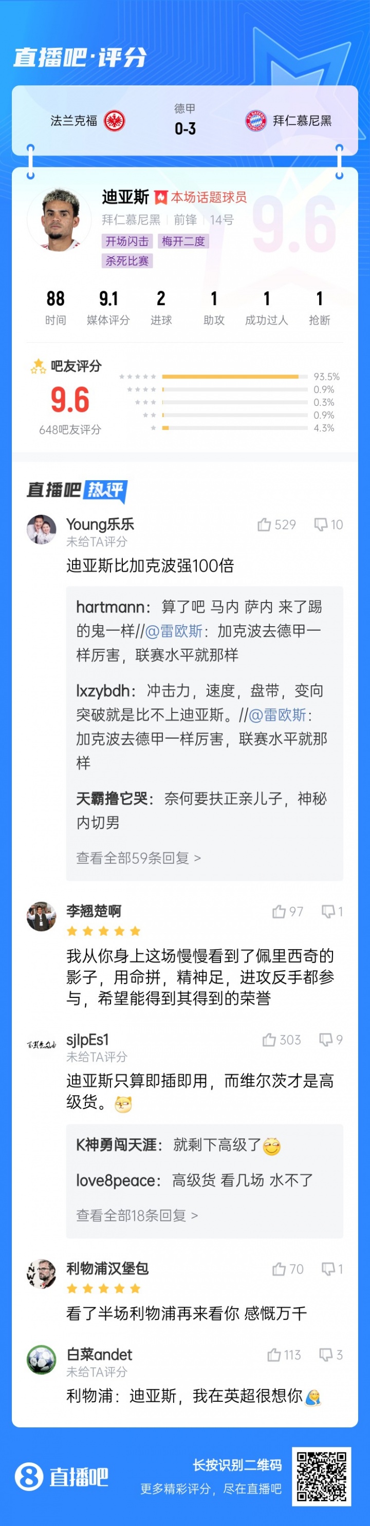 2025-2026賽季德甲火熱進行中,和小紅書聯(lián)合發(fā)起每輪德甲最佳球員評選活動!第六輪評選結(jié)果結(jié)出爐,迪亞斯2射1傳,幫助拜仁3-0完勝法蘭克福,獲得吧友超5萬票支持,當選【X小紅書德甲第6輪最佳球員】!X小紅書|德甲第6輪MVP評選拜仁3-0法蘭克福,迪亞斯2射1傳吧友熱評:利物浦:迪亞斯,我在英超很想你