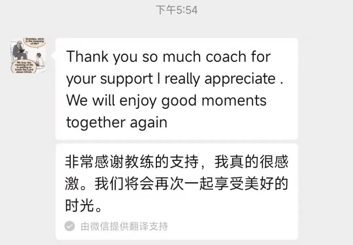 昨天下午,紅獅足球副總經(jīng)理、前主帥孫新波通過(guò)微信與昔日愛(ài)徒阿薩莫阿交流,后者報(bào)平安:“現(xiàn)在感覺(jué)好多了,我很快將接受手術(shù),盡快歸來(lái)”。